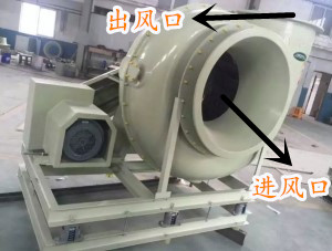 參照上圖,氣體通過管道由風機的進風口進入,然后經過玻璃鋼風機葉輪的旋轉由出風口排出。