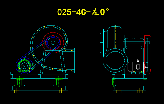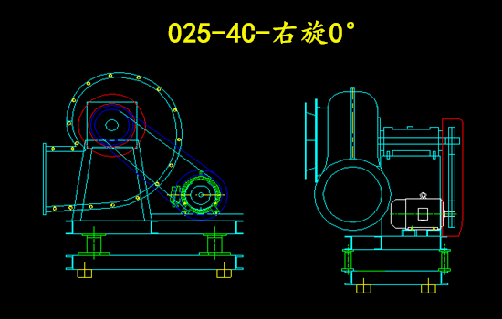 上圖為025-4C-右旋0°的玻璃鋼離心風機圖紙;