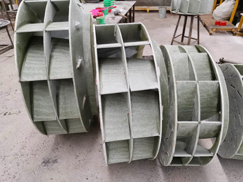 葉輪所使用的的樹脂為防腐性能卓越的乙烯基樹脂,玻纖使用無堿玻纖氈,對于大部分的酸、堿等腐蝕性成分有很高的抗性。但是如果雜質過多或者風機的安裝設計不合理會導致葉輪表面附著大量雜質。