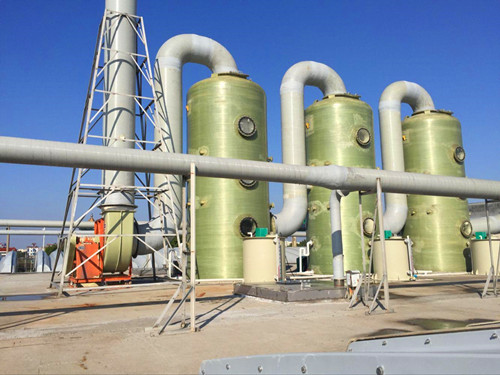 市場上玻璃鋼噴淋塔指的是使用玻璃鋼材料制作而成,通過噴淋的方式使吸收液與廢氣進行接觸,達到凈化廢氣中有害成分目的的塔體。下圖就是一些玻璃鋼噴淋塔安裝效果圖。