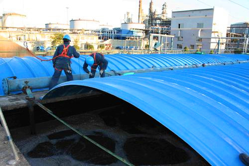 安裝在污水池上,用來收集污水揮發時產生的廢氣,然后將廢氣集中通過管道排至制定的處理容器中。經過凈化處理之后,在玻璃鋼離心風機的作用下再排至大氣環境中。