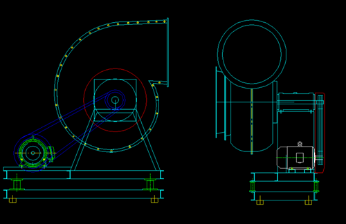 e、圖中紅色的線圈代表的是風機葉輪,葉輪通過皮帶輪和錐套與軸承箱連接在一起,風機的葉輪是非常重要的配件,如果葉輪出現故障會導致風機無法使用,所以在使用風機時要避免有雜物進入風機內部,防止其與葉輪摩擦造成葉輪損壞。