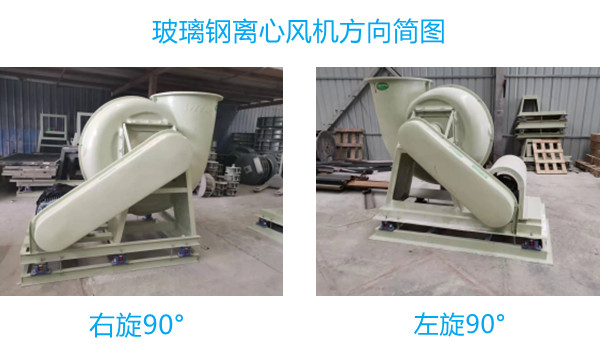 在采購(gòu)玻璃鋼離心式風(fēng)機(jī)時(shí),風(fēng)機(jī)方向的完整表達(dá)方式如左旋90°、右旋180°、左旋180°等。