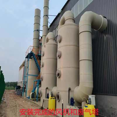a、根據(jù)廢氣處理方案先劃定風機的安裝地點,然后使用叉車或吊車將風機搬運至制定的安裝位置;
